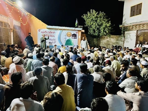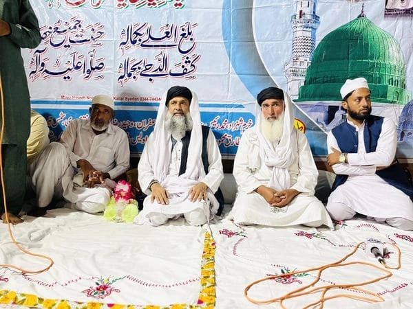 At the Mawlid al-Nabi ﷺ gathering in Dhoke Choura Mughal, Hazrat Faqir Ghulam Hasnain Qadri, also known as Sain Sarkar, delivered a special speech and offered prayers.